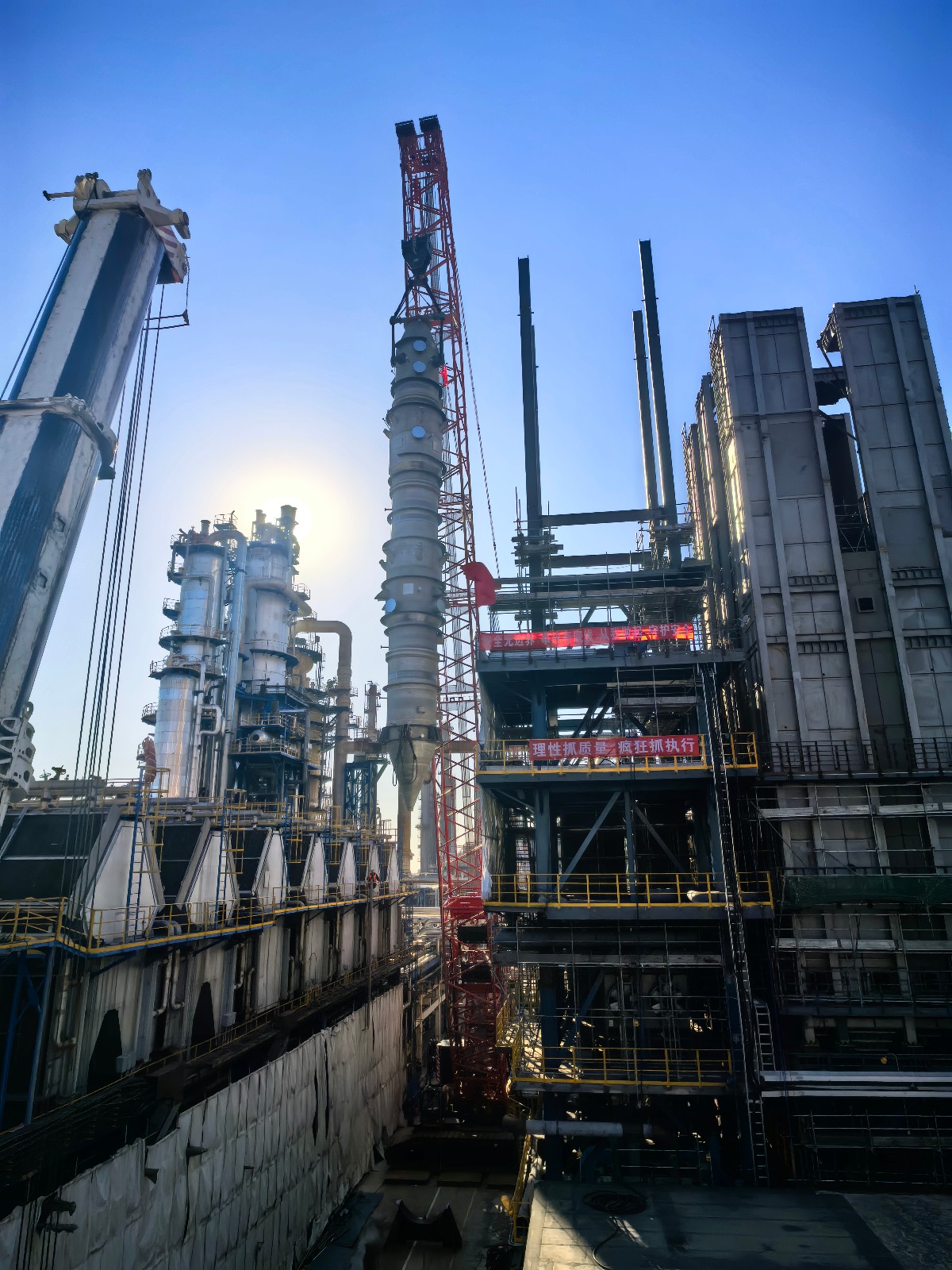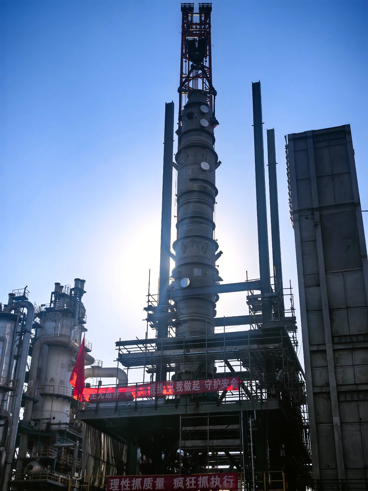 2024年12月3日,燕化正邦公司进行了2#催化裂化装置烟气干法脱硫项目再生塔C902大型设备吊装作业。再生塔C902作为项目中的关键设备,塔体长度27米,重约130吨。因现场吊装环境受限,吊装作业面临着诸多挑战。为确保吊装过程的安全与高效,公司项目管理中心、安全环保部、专家工作室和设备制造安装分公司进行了详细的前期策划与准备,从方案的编制、论证到吊装机械的选择,从人员的调配到现场的组织,每一个环节都经过了严格的推演。